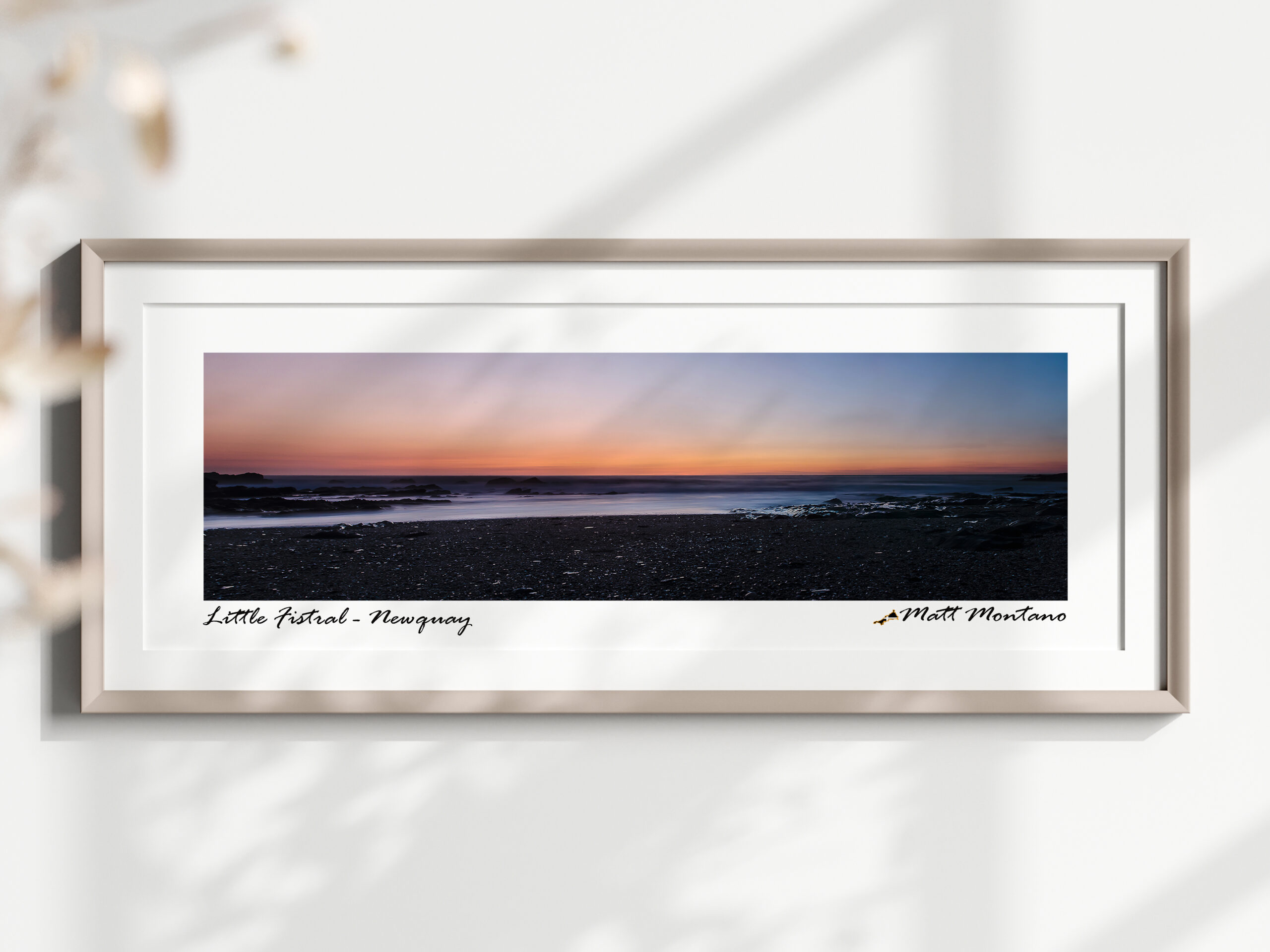 Each print comes with a plain Obeche wood Frame as standard (frames are all made in Truro, Cornwall), are signed on the front along with the location name, and comes with a frame backing mosaic-label (see product images above), as well as a small A6 laminated information card containing brief description of the images’ location and the weather/ sea conditions present on the day the image was taken.